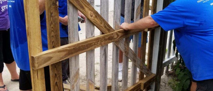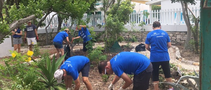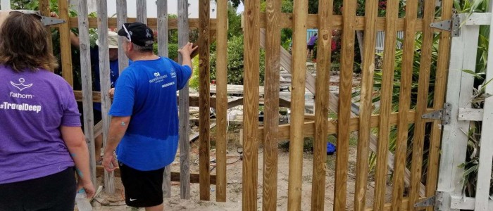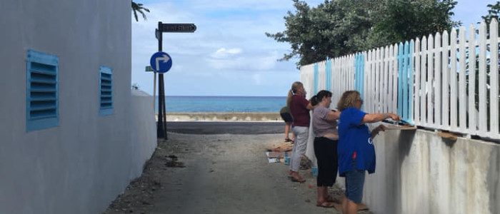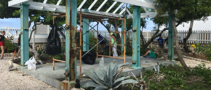 We gathered as we disembarked the ship in Grand Turk and traveled just a few minutes to the Turks and Caicos National Museum. September of 2017 brought devastation to the island of Grand Turk with not one, but two major hurricanes, Irma and Maria. The island is still recovering. It was our chance to help the Museum in their recovery. It’s amazing what nearly 50 pairs of hands can do in a few hours. We painted the newly constructed fence, we painted the cistern, the gazebo, weeded the garden and several of the men in the group worked together to build a new gate.